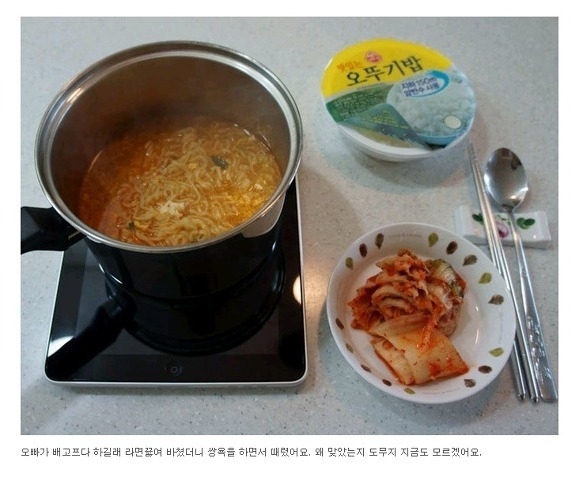 배고픈 오빠를 위해서 동생이 라면을 끓여주었다고 합니다.