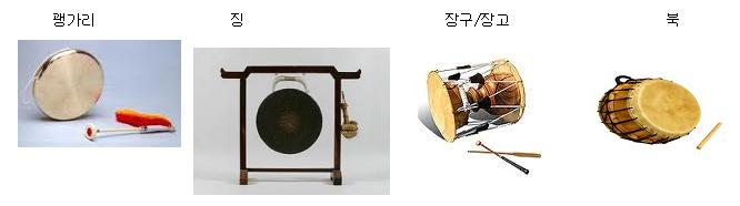 만든 북과 장구는 땅의 소리를 나타내고, 쇠로 만든 징과 꽹과리는 하늘의 소리를 나타낸다. 꽹과리는 덩치가