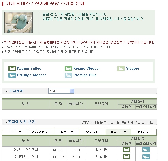 4. 2009년6월30일까지 기준으로 동남아 스케줄에는 왜 왜 왜... 호치민시행은 있으면서 더 긴 시간을